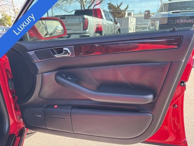 Discover the exceptional 2001 Audi A6 2.7T quattro, a sophisticated and well-equipped luxury sedan that will elevate your driving experience. With its powerful 2.7L V6 engine, 5-speed automatic transmission, and renowned quattro all-wheel-drive system, this A6 delivers a thrilling and confident performance on the road.- Impressive custom features such as [custom_features]- Desirable package features including [package_features]- Standout starred features like [starred_features]- Comprehensive checked features such as 8 speakers, AM/FM radio, CD player, dual-zone automatic climate control, power driver's seat, and moreThe exterior of this A6 shines in a stunning Red color, complemented by body-color bumpers, heated power mirrors, and alloy wheels. Step inside the spacious cabin and you'll be surrounded by genuine wood accents, a leather-wrapped steering wheel, and a wealth of comfort and convenience features.Safety is a top priority, with the A6 boasting a robust suite of advanced safety technologies, including ABS brakes, dual front and side airbags, electronic stability control, and a security system. Experience the peace of mind that comes with owning this well-equipped and meticulously maintained Audi.With its impressive performance, premium features, and timeless design, the 2001 Audi A6 2.7T quattro is a compelling choice for the discerning driver. We invite you to visit our showroom and take this exceptional sedan for a test drive. Let us demonstrate how it can elevate your driving experience and exceed your expectations.