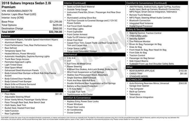 2018 Subaru Impreza 2.0i Premium