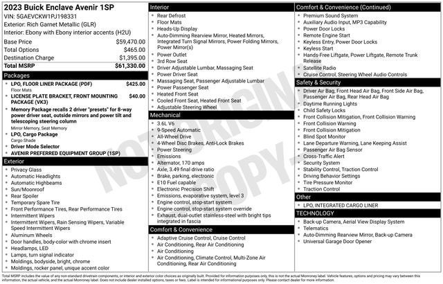 Rich Garnet Metallic 2023 Buick Enclave Avenir 4D Sport Utility AWD 3.6L V6 SIDI VVT 17/25 City/Highway MPG