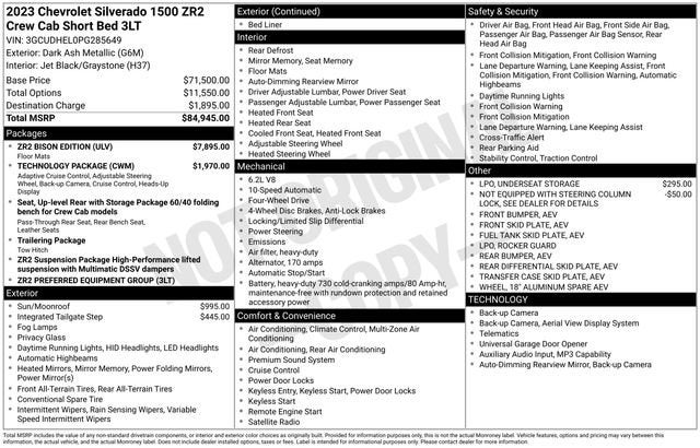 Recent Arrival! Clean CARFAX.Dark Ash Metallic 2023 Chevrolet Silverado 1500 ZR2 4D Crew Cab 4WD EcoTec3 6.2L V8 14/17 City/Highway MPGCorwin Buick GMC Cadillac Reno! Based upon current new inventory shortages, deals subject to dealer approval based upon trade, loyalty, and proximity to dealership. Friendly service and aggressive pricing is why we are your new and pre-owned vehicle dealer serving, Reno, Sparks, Carson City, and Northern Nevada Area, and surrounding states.